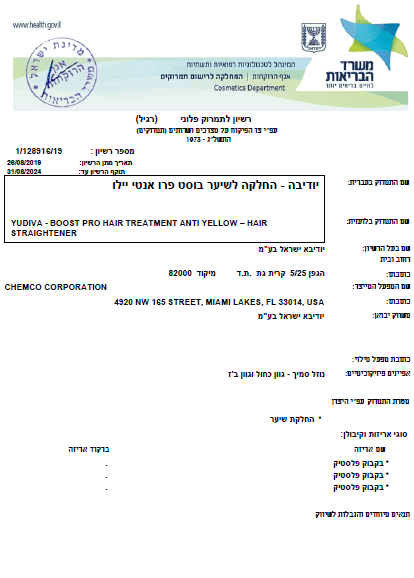 משרד הבריאות יודיבה- החלקה לשיער בוסט פרו אני יילו
